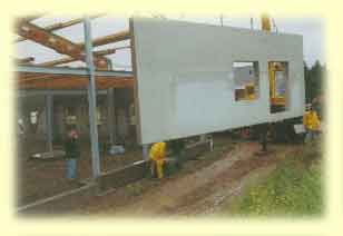 | Hier werden die Wände gesetzt, mit fertigen Aussparungen für Fenster und Türen. | ||||||||||||